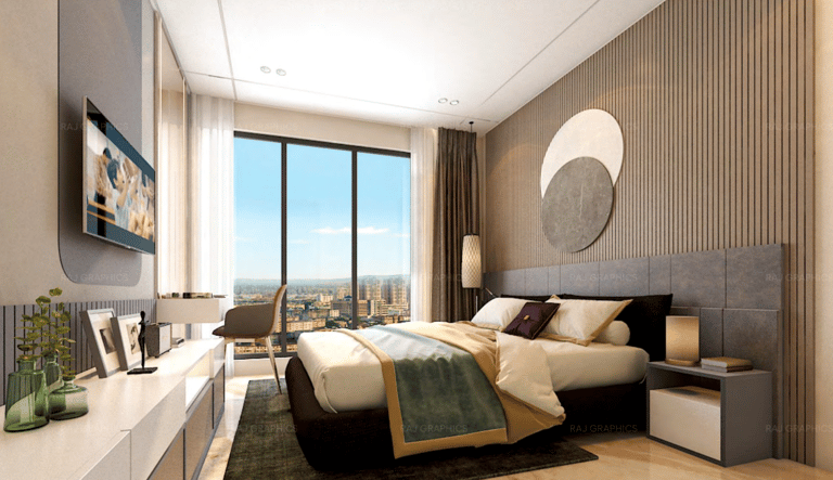 Luxurious Living Spaces: Raj One features premium 1 BHK, 2 BHK, and 3 BHK apartments, meticulously designed to provide a serene and comfortable living environment.
